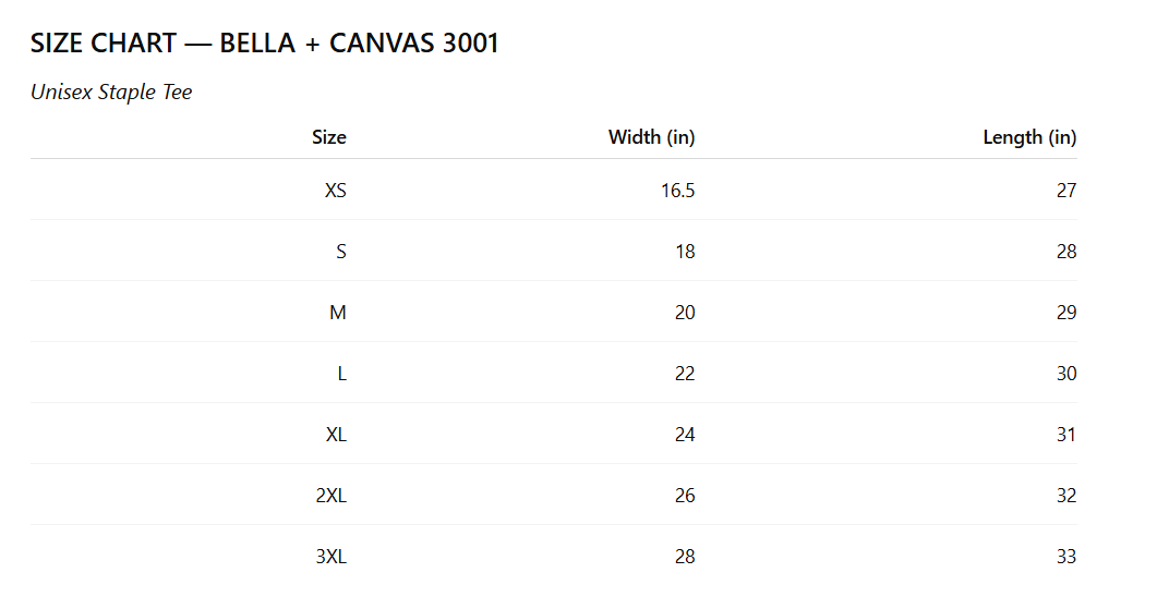 The Bella + Canvas 3001 offers a clean silhouette with a relaxed unisex fit that works effortlessly into everyday life. It’s comfortable without feeling casual, structured without feeling stiff.